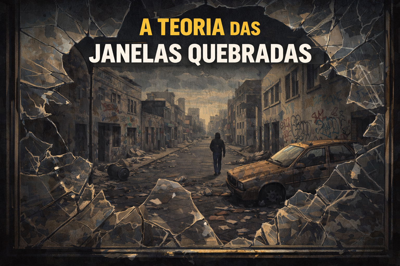 A Teoria das Janelas Quebradas surgiu a partir de um experimento simples, mas poderoso. Em estudos clássicos de psicologia social, observou-se que automóveis abandonados em bairros diferentes recebiam tratamentos distintos. Em áreas onde já havia sinais de desordem, o vandalismo acontecia rapidamente. Onde o ambiente parecia organizado, o carro permanecia intacto por mais tempo, até que alguém desse o “primeiro passo” de danificá-lo. A partir daí, o processo de destruição se acelerava.
