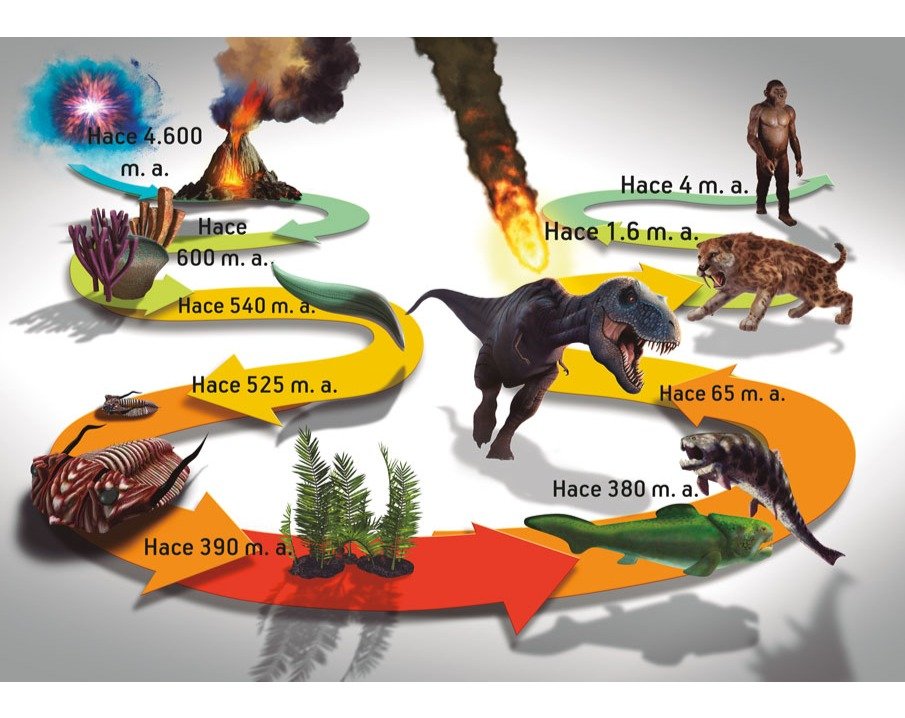 A Era Paleozoica inicia-se com a chamada “Explosão Cambriana”, um evento de diversificação biológica que deu origem a numerosos grupos de organismos marinhos. Ao longo de seus seis períodos (Cambriano, Ordoviciano, Siluriano, Devoniano, Carbonífero e Permiano), ocorreram transformações profundas, como a colonização do ambiente terrestre por plantas e animais, o surgimento dos primeiros vertebrados e a formação de extensos depósitos de carvão. A era termina com a maior extinção em massa da história, no fim do Permiano, que eliminou cerca de 90% das espécies marinhas e 70% das terrestres, alterando drasticamente a biodiversidade global.