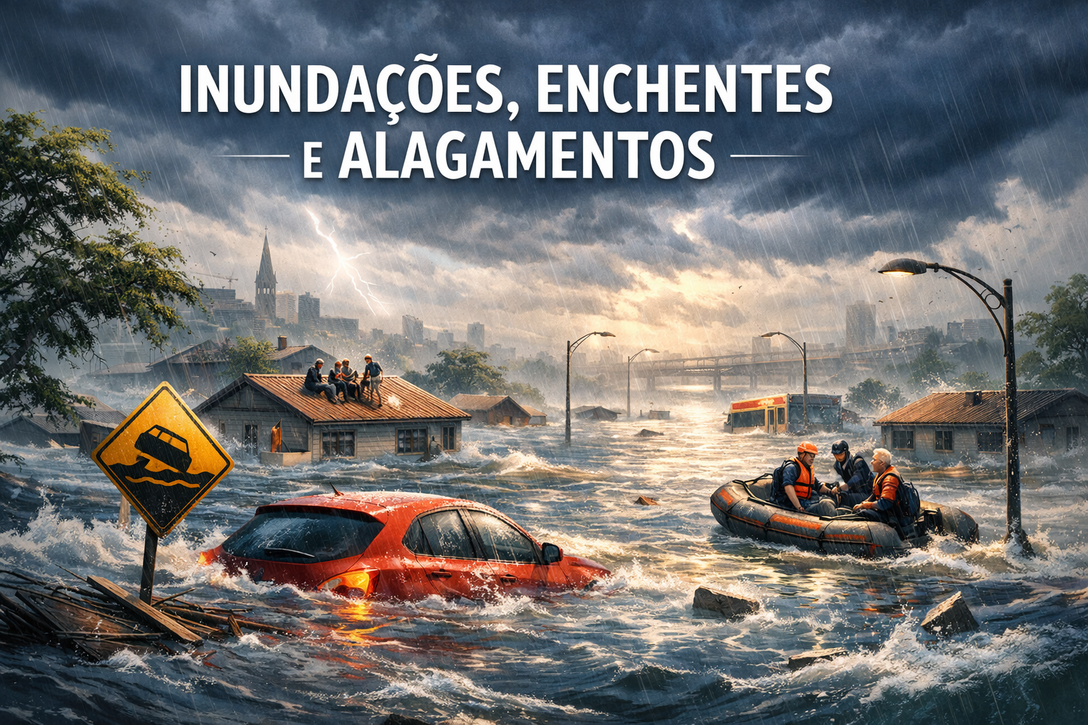 Inundação, enchente e alagamento são termos próximos, mas descrevem realidades distintas dentro da relação entre água, natureza e sociedade. A enchente é o aumento natural do nível do rio; a inundação ocorre quando essa água transborda para áreas ocupadas; o alagamento resulta principalmente do acúmulo de água nas cidades devido à impermeabilização e falhas na drenagem.