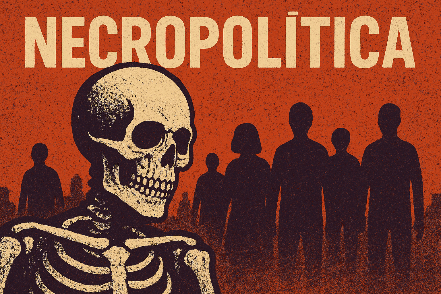 Em termos simples, necropolítica significa a política da morte — isto é, o uso do poder para decidir quem pode viver e quem deve morrer, e quais grupos sociais são expostos a condições que tornam suas vidas precárias ou inviáveis.