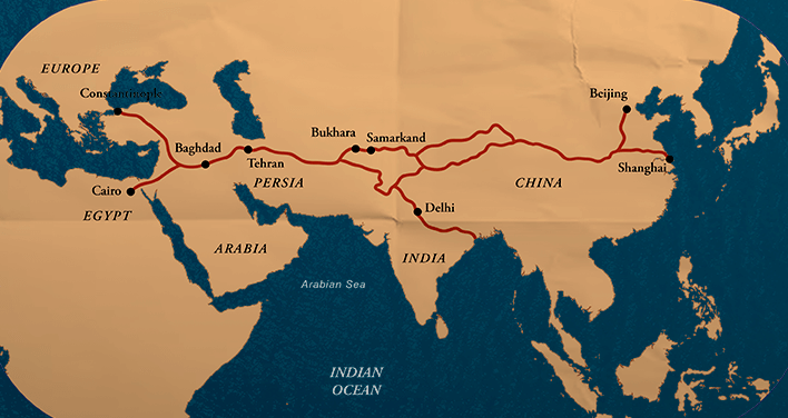 A localização geográfica da Rota da Seda foi um dos principais fatores para sua importância histórica. A rota terrestre principal começava em Xi’an, na China, e seguia por regiões como o Deserto de Gobi, a Cordilheira do Pamir e a Ásia Central, chegando ao Oriente Médio e, posteriormente, à Europa. Além disso, a chamada Rota da Seda Marítima conectava portos chineses ao Sudeste Asiático, à Índia, ao Oriente Médio e ao Leste da África.