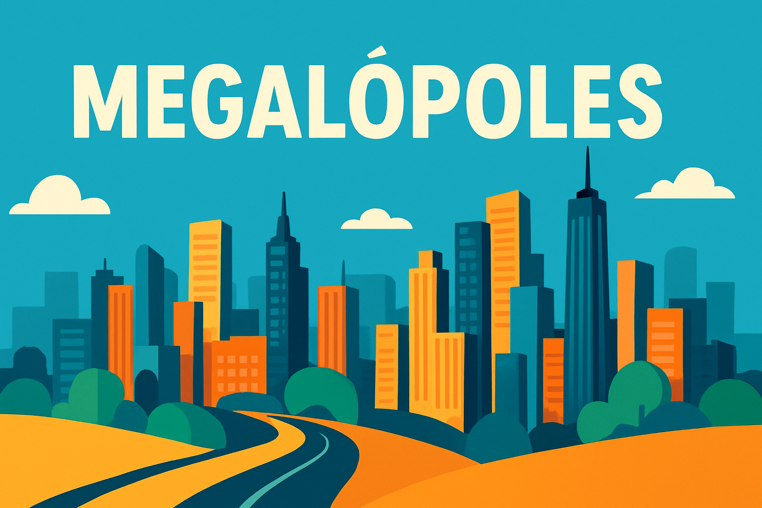 O termo megalópole tem origem no grego antigo: mega (grande) e polis (cidade), ou seja, “grande cidade”. Na Geografia, ele descreve uma extensa região urbanizada formada pela união física e funcional de duas ou várias metrópoles, resultando em uma área urbana contínua e densamente povoada.